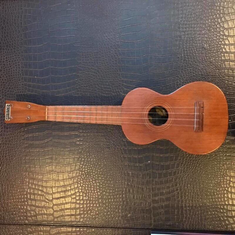 ตัวนี้คืออูคูเลเล่จากราวๆปี 1920 ที่ช่างฮาวายผลิตส่งไปขายที่อเมริกาแผ่นดินใหญ่ แล้วติดตราของร้านที่ขาย ราคาสมัยนั้นน่าจะสัก 5-10 เหรียญ ซึ่งคิดค่าเงินสมัยนั้นก็คงไม่ได้ถูกนัก